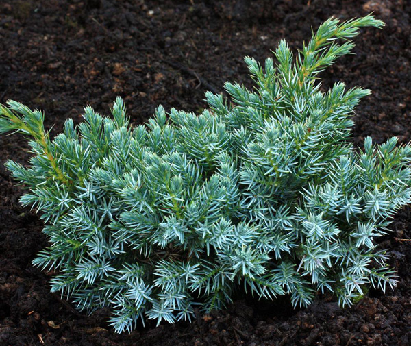 También conocido como Enebro azul enano. Conífera de lento crecimiento perenne con hojas de color azul acerado y algo pinchudas, de forma globosa, muy densa y compacta.